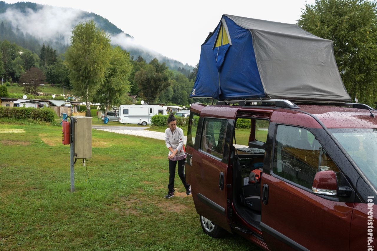 Lasciato il tandem, recuperiamo il Doblò e ci dirigiamo a Villach. Probabilmente il campeggio più comodo e vicino alla città è il Seehof (costo: 29,70€ a notte per 2 persone, piazzola, auto, elettricità e acqua calda inclusi – i servizi sono puliti, curati e super tecnologici) affacciato su un bel laghetto in cui si può fare anche il bagno.