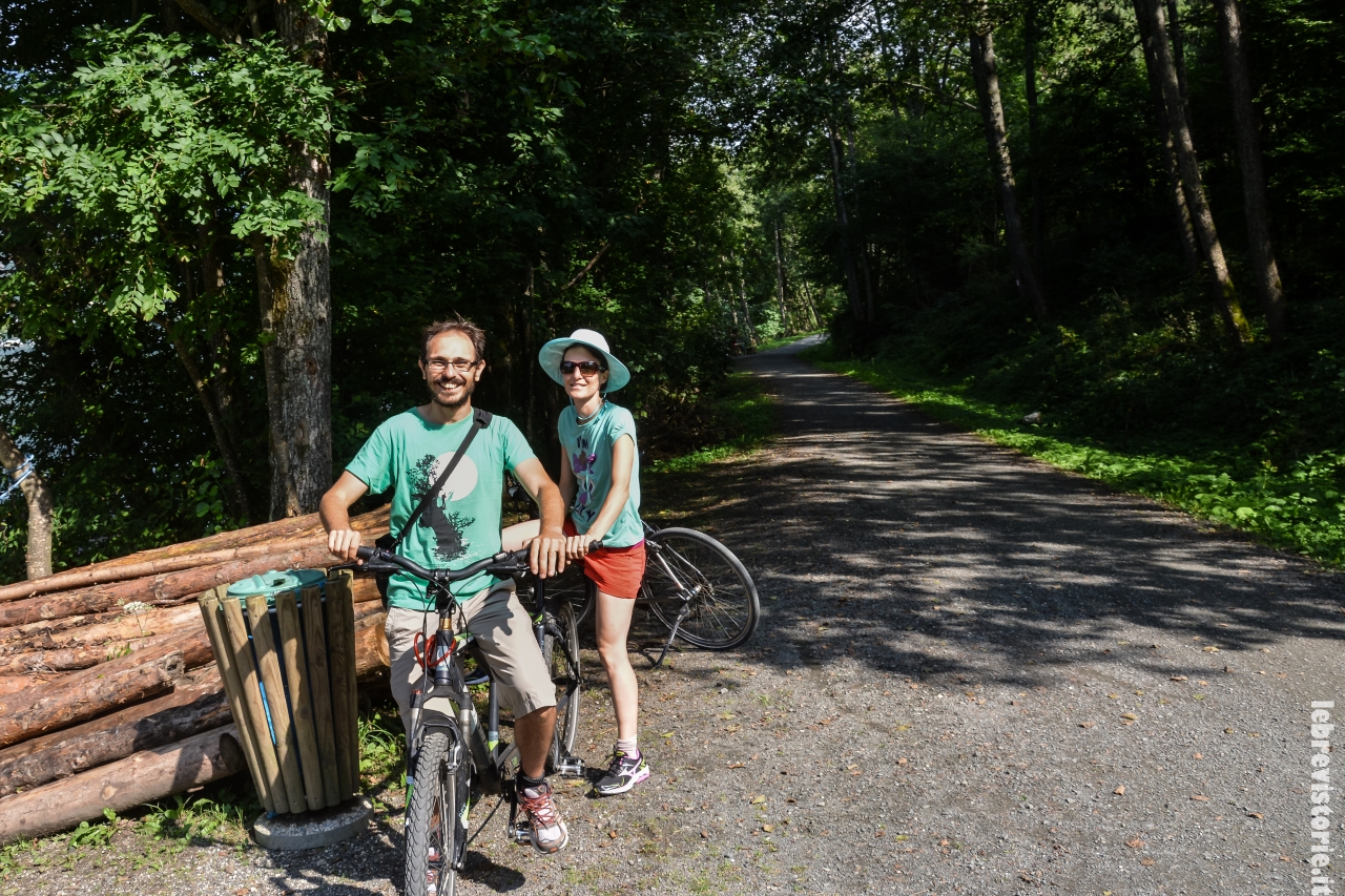 La sponda nord è percorsa da una pista ciclabile asfaltata, che corre parallela alla strada. La sponda sud è decisamente più bella ed è percorsa da una pista sterrata all’interno del bosco. Vi sono un po’ di salite che ci hanno messo alla prova, ma noi che non siamo ciclisti ce l’abbiamo fatta. Quindi ce la può fare chiunque.