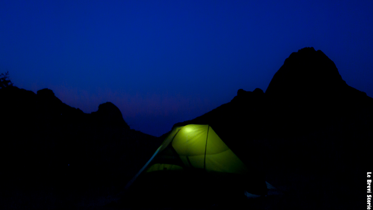 La nostra tenda illuminata sotto il profilo imponente dello Spitzkoppe, il Cervino d’Africa (Namibia 2012)