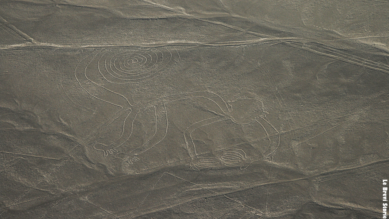 Una delle incredibili linee di Nazca, la scimmia, ripresa da un piccolo aereo (Perù 2010)